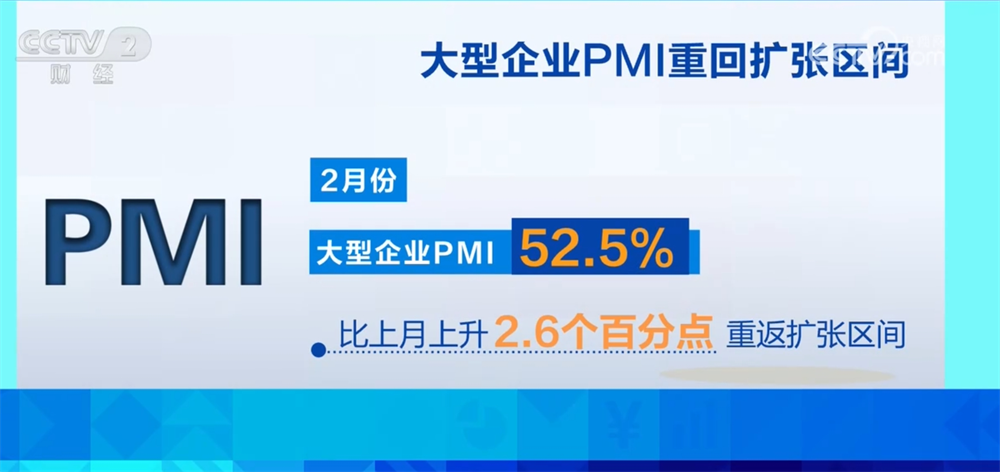 国家统计局、中国物流与采购联合会3月1日发布的数据显示,2月份中国制造业采购经理指数(PMI)升至50.2%,重返扩张区间;非制造业商务活动指数为50.4%,比上月上升0.2个百分点,非制造业继续保持扩张。