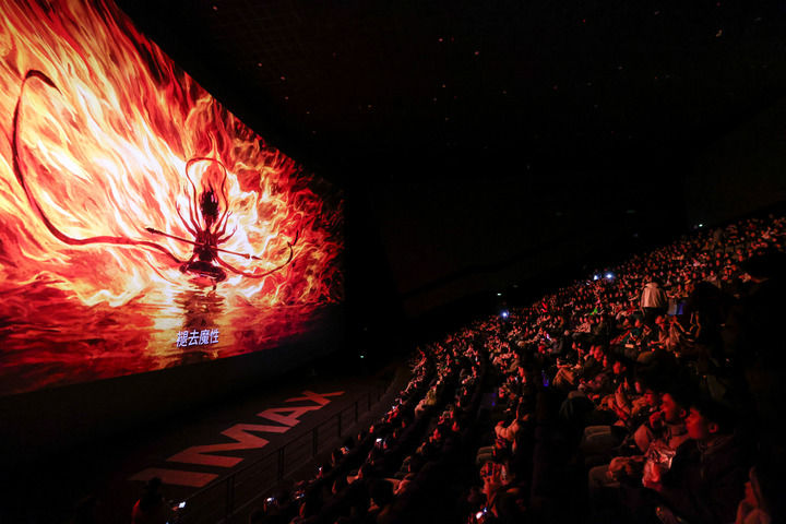 2025年2月25日,观众在贵阳越界影城IMAX影厅内观看电影《哪吒2》。 新华社记者 欧东衢 摄