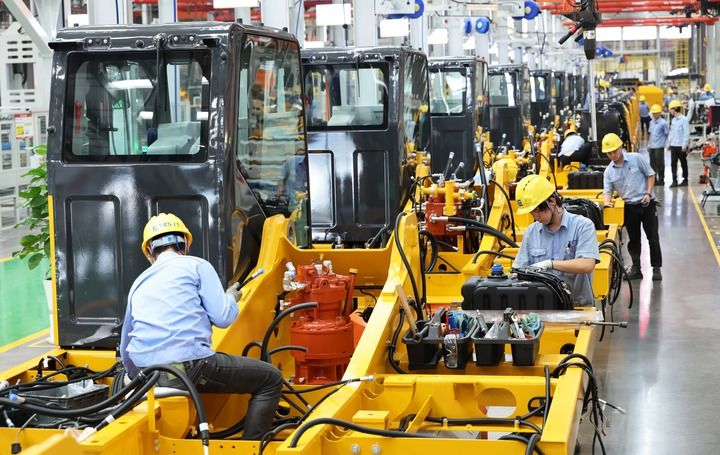 这是在广西柳州市柳工挖掘机智慧工厂拍摄的挖掘机上部机构件组装线(2024年11月12日摄)。 新华社记者 金皓原 摄