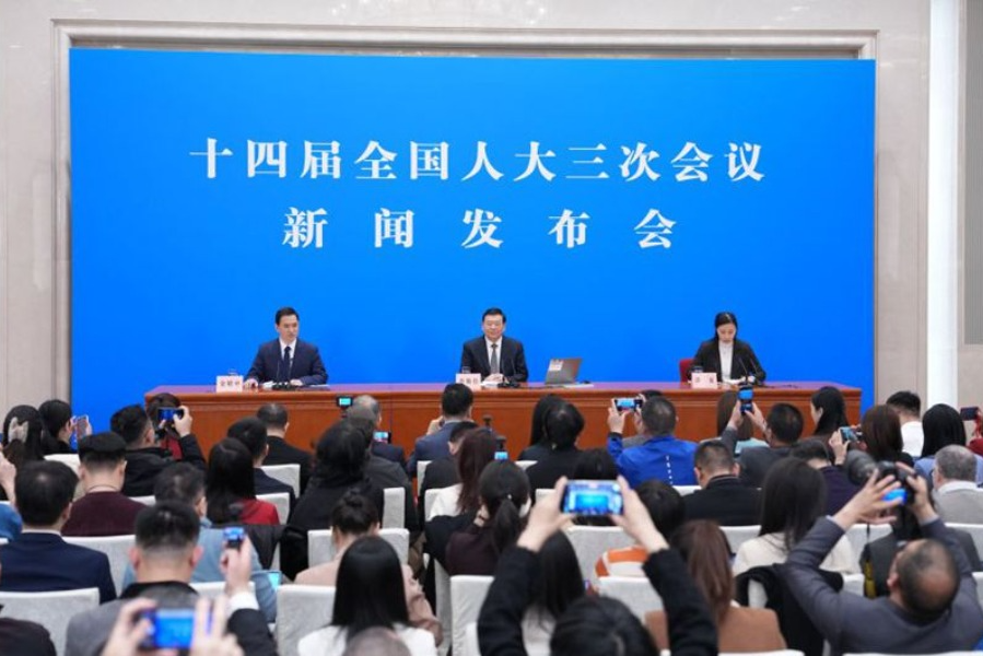 十四届全国人大三次会议今天(3月4日)在人民大会堂举行新闻发布会,大会发言人娄勤俭就大会议程和人大工作相关问题回答中外记者提问。