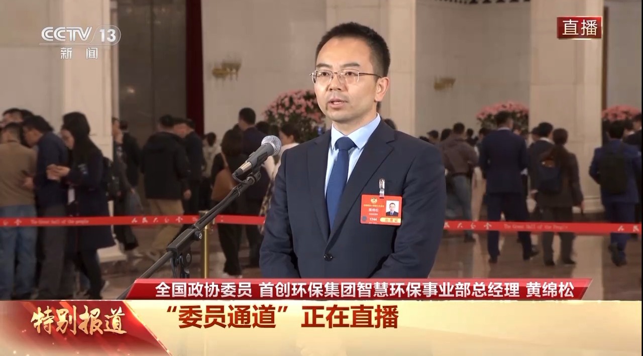 今天(3月4日)下午,全国政协十四届三次会议首场“委员通道”在人民大会堂举行,全国政协委员、首创环保集团智慧环保事业部总经理黄绵松接受了记者采访。