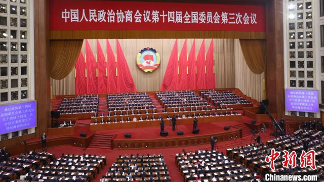 3月10日,全国政协十四届三次会议在北京人民大会堂举行闭幕会。记者 杨可佳 摄