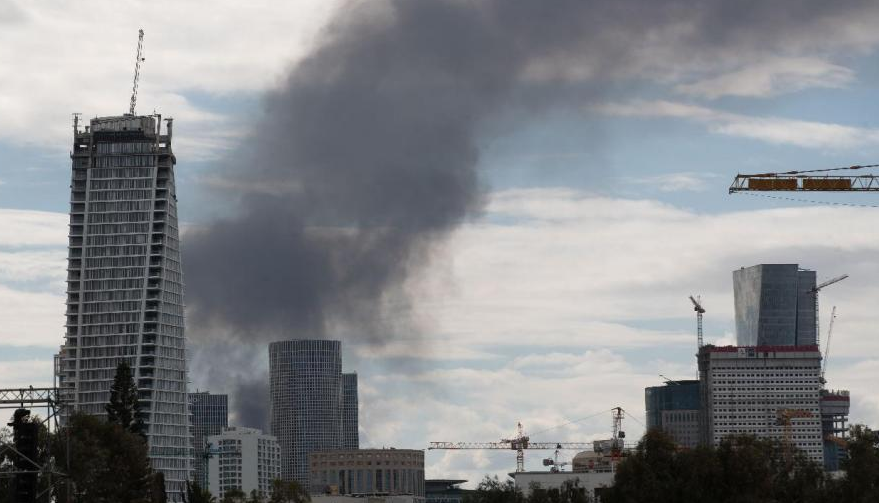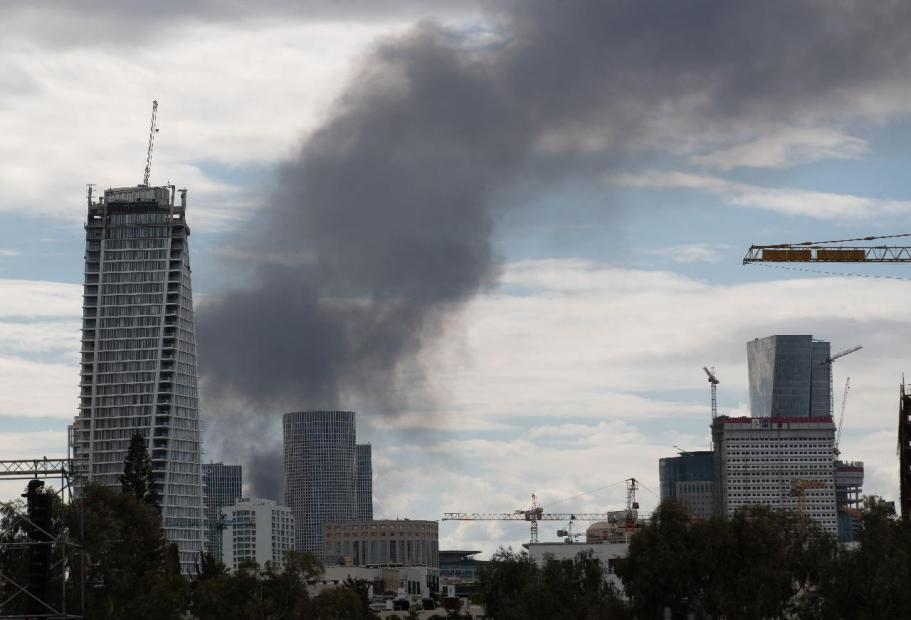 这是2月28日在以色列特拉维夫拍摄的浓烟。来源:新华社