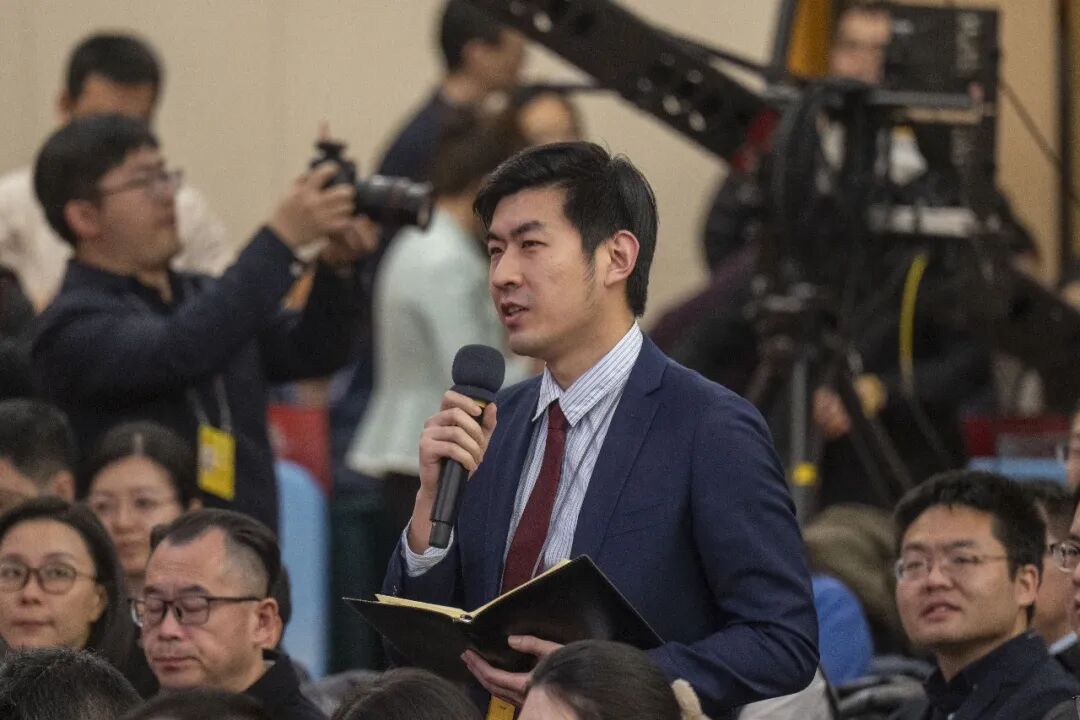 人民日报记者李君强在经济主题记者会上提问。翁奇羽摄