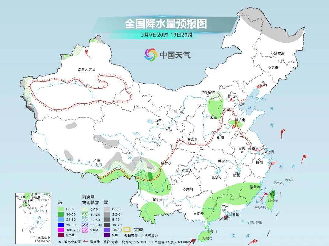 由于时效较远,雨雪落区还会有调整,大家留意临近最新预报。