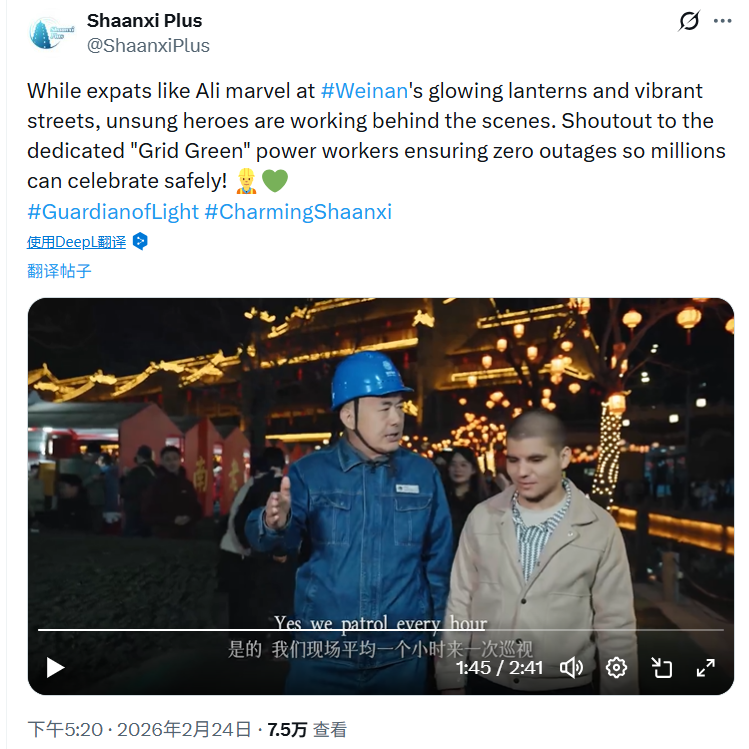 外宣片《丝路光影·满电秦东》在Twitter平台单条浏览量达到7.5万次