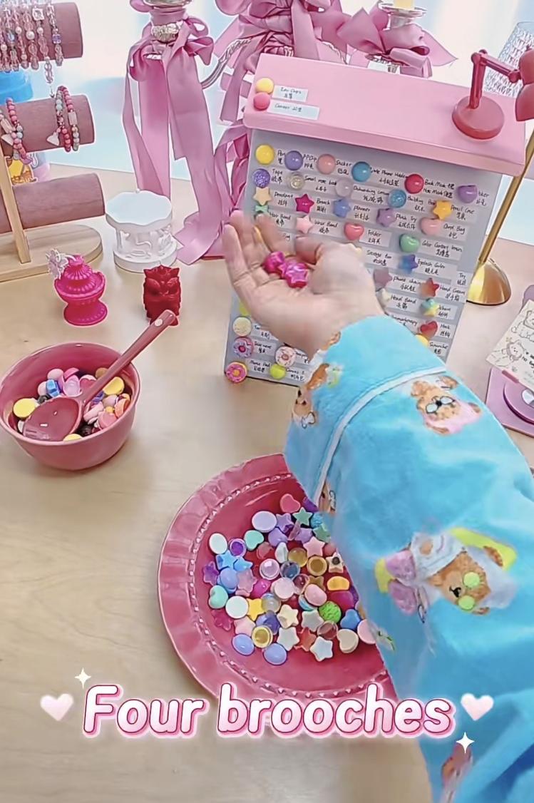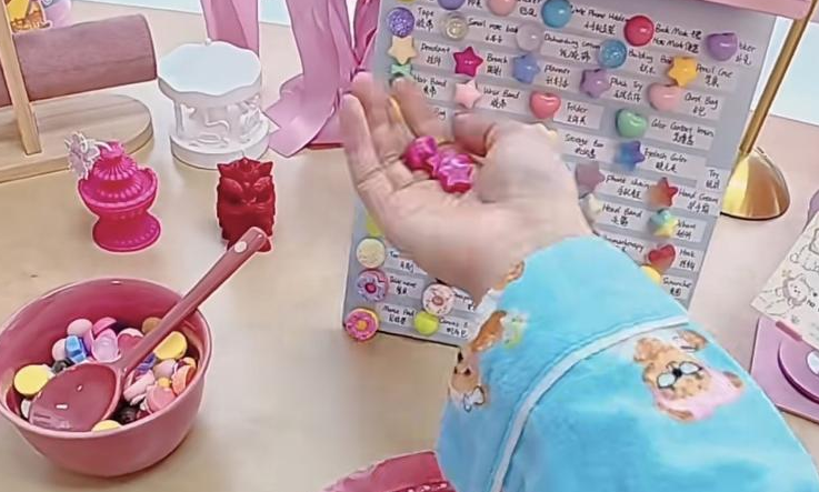 “我看到卖家从盛放的容器里轻轻舀起一勺色彩绚丽的珠子,然后一件件地取出对应的小商品,整齐地摆放在桌面上。灯光柔和,舀珠声清脆,整个过程安静又治愈。”林希说,似乎有种魔力,让自己一下子就着了迷。