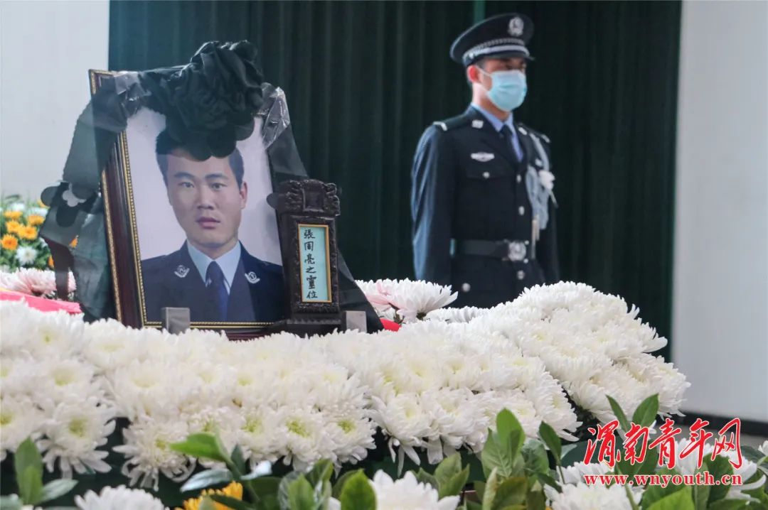 11月21日上午,渭南市公安局临渭分局因公牺牲民警张周亮的遗体告别仪式在渭南殡仪馆举行。一千余名张周亮生前的同事、同学、亲朋以及闻讯赶来的群众前来为他送行。