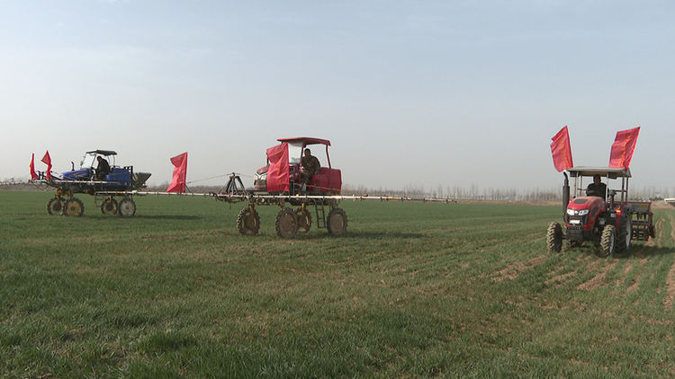 随着气温逐步回升,小麦进入了返青期,种植户抢抓农时,开展田间管理。在大荔县赵渡镇乐合村一块绿油油的麦田里,记者看到,伴随着机械的轰鸣声,工作人员驾驶着施肥机械正在紧张地作业。