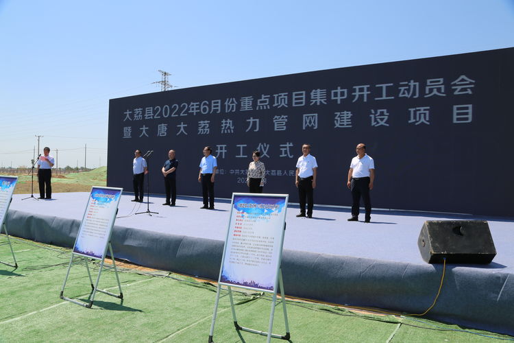 6月17日,大荔县参加全市2022年第六次项目集中开工活动,同步开工建设大唐大荔热力管网建设等4个项目。总投资11.5亿元,年度计划投资10.8亿元。县委书记由建新、县长杜鑫、县政协主席谢文秀等县级领导参加开工仪式。