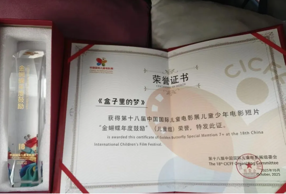 近日,在第十八届中国国际儿童电影展上,合阳县实验小学报送的两部微电影作品《盒子里的梦》和《因为梦想》在“光影筑梦·珍爱和平”儿童少年电影短片征集活动中脱颖而出,双双荣获金蝴蝶年度鼓励奖,展现该校素质教育新成果。