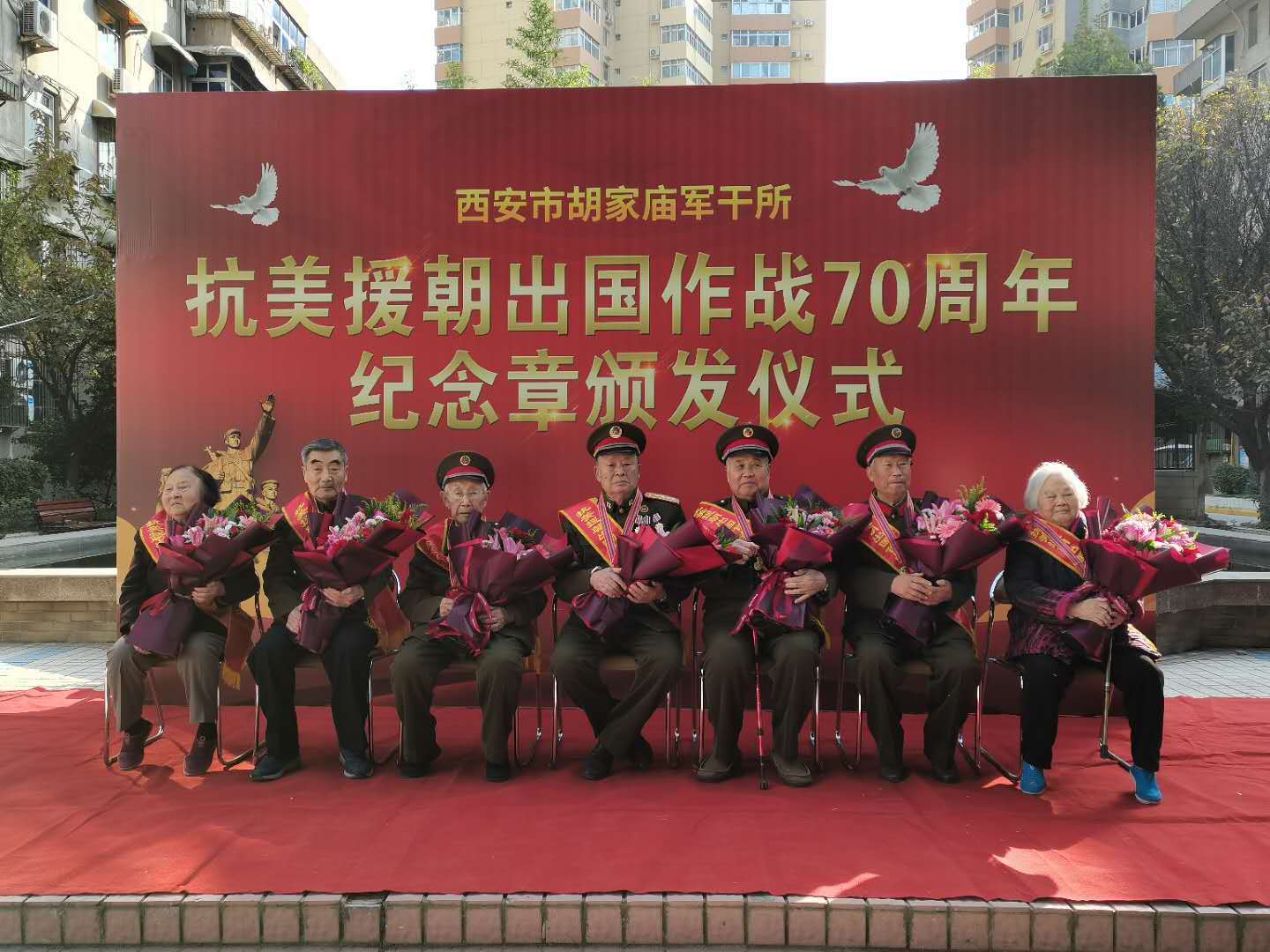 西安市胡家庙军干所举行抗美援朝出国作战70周年纪念章颁发仪式。