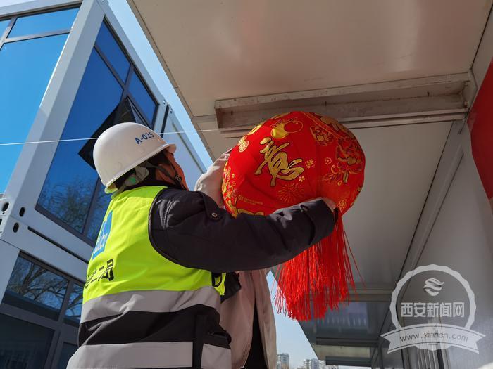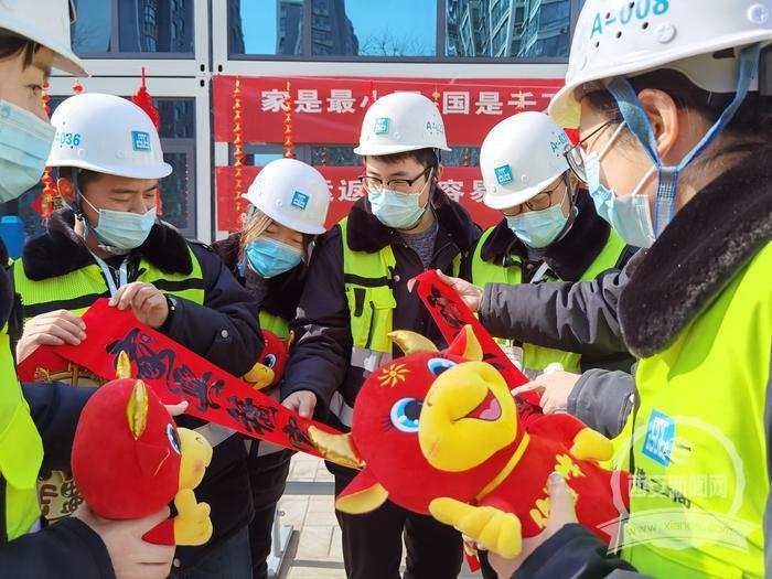 当日,中建二局在浐灞生态区数字经济园区一项目工地上开展迎新春活动,让留守原地过年的工友们通过贴对联,挂灯笼,拆大礼包、品陕西特色美食等活动,感受温暖年味。