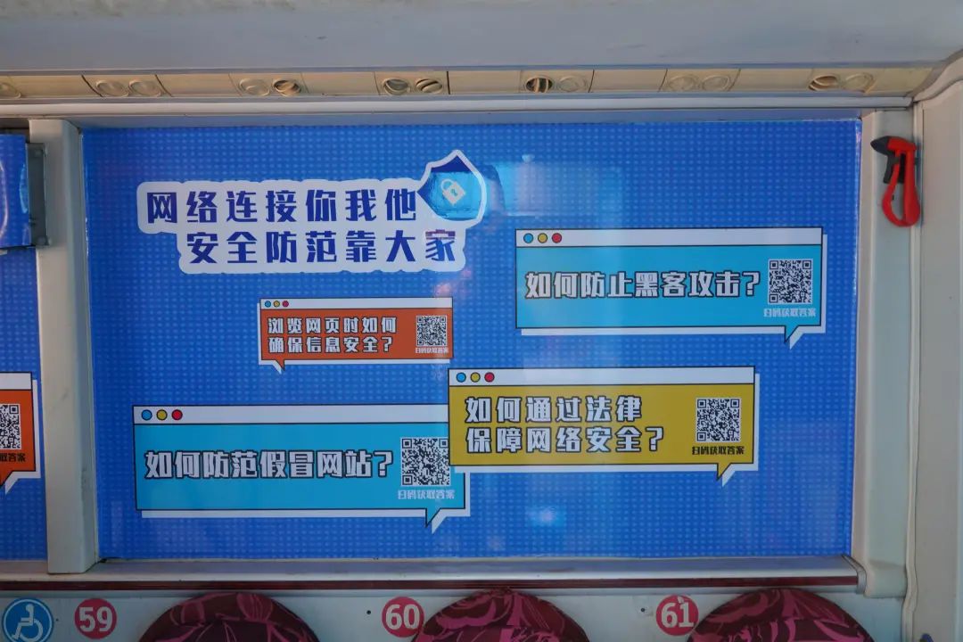 值得关注的是,车厢内还开启了“安全能量加油站”创意课堂,现场志愿者为活动参与者进行网安知识科普,巡展车窗位置汇聚各种关于网络安全的常见问题,参与者扫码即可解锁相关答案。同时,通过讲述真实案例、现场互动问答、情景演示等方式,让参与者了解更多的网安知识及防护技能。