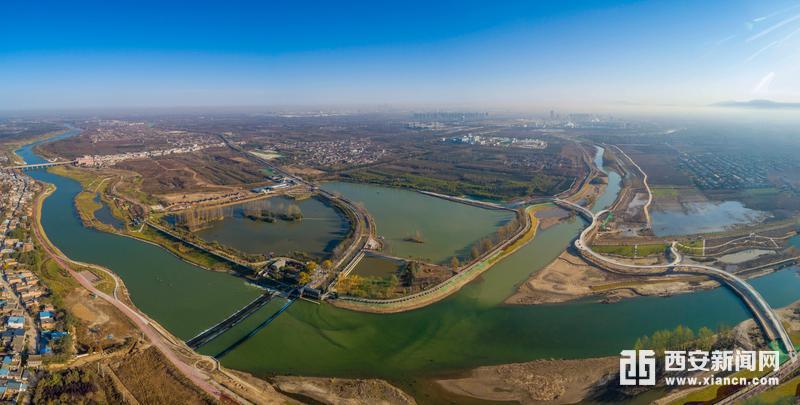 11月18日,航拍西安高新区沣惠渠生态廊道景观提升项目(渠首仪祉湖段)