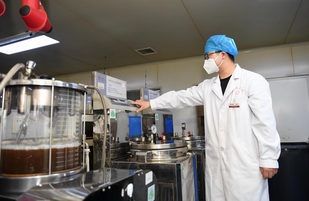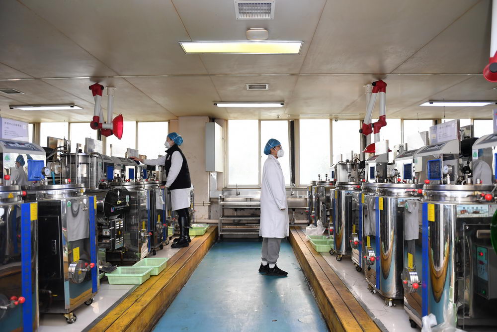 1月3日,在西安市中医医院煎药中心,煎药员操作煎药机对新冠中药预防方药材进行煎煮。新华社记者 李一博 摄