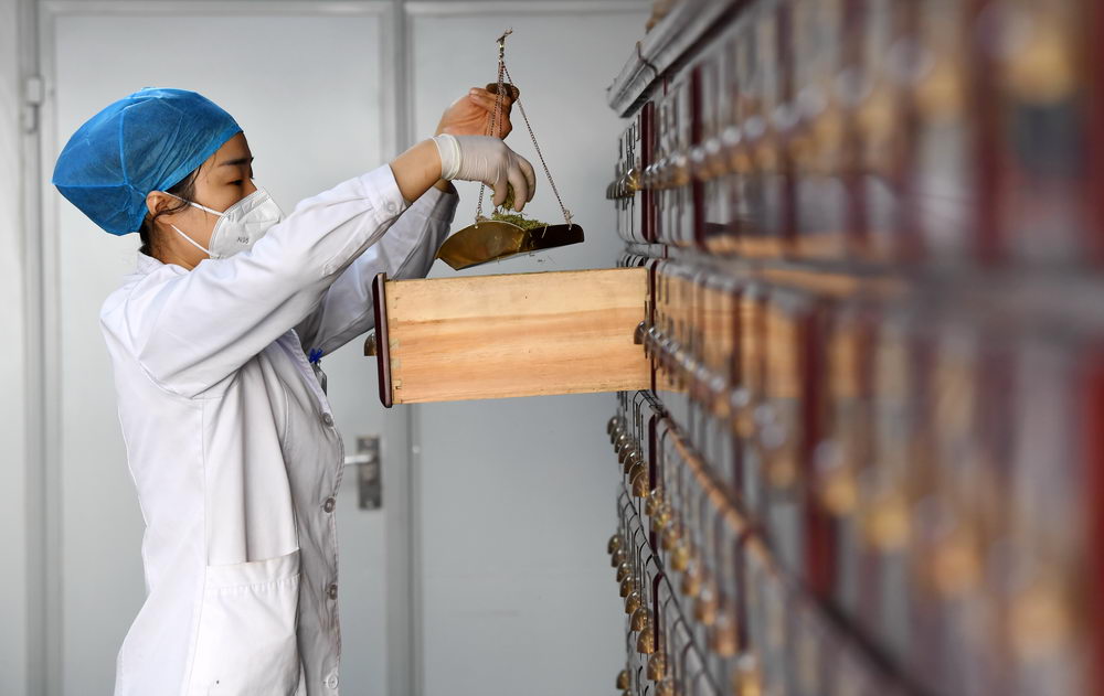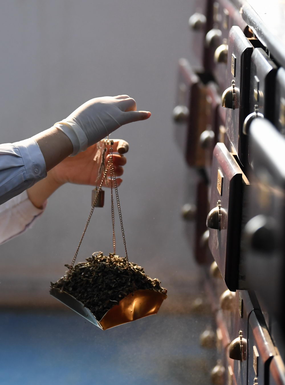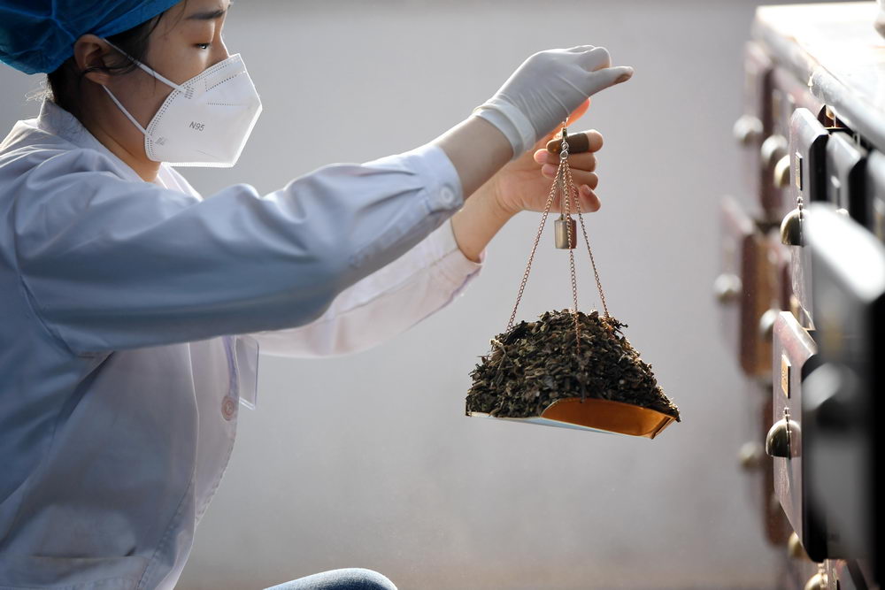 1月3日,在西安市中医医院煎药中心,中药师在进行新冠中药预防方调剂。新华社记者 李一博 摄