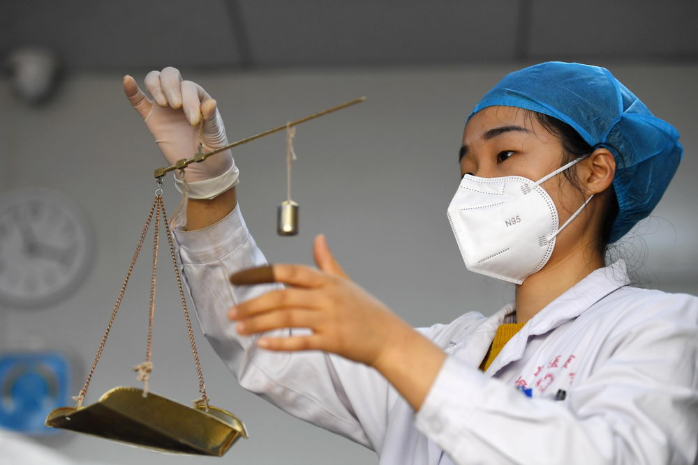 1月3日,在西安市中医医院煎药中心,中药师在调剂新冠中药预防方。新华社记者 李一博 摄