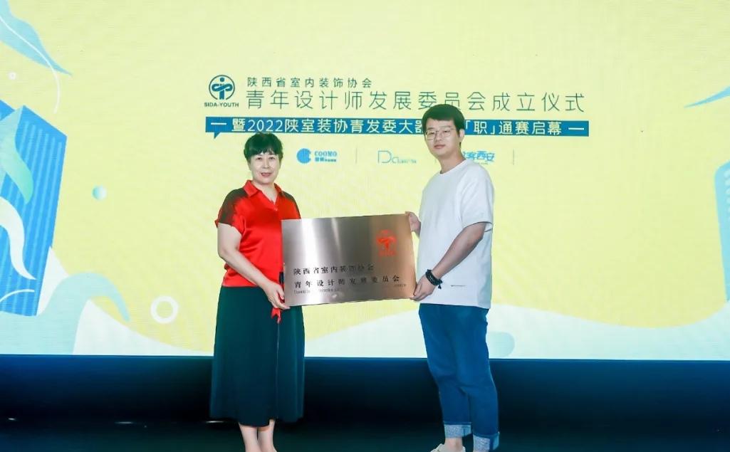 协会会长贺榆霞为陕室装协青发委授牌,陕西省室内装饰协会副会长兼秘书长李庭辉宣读陕室装协青发委成立文件,并宣读陕室装协青发委首届领导成员。