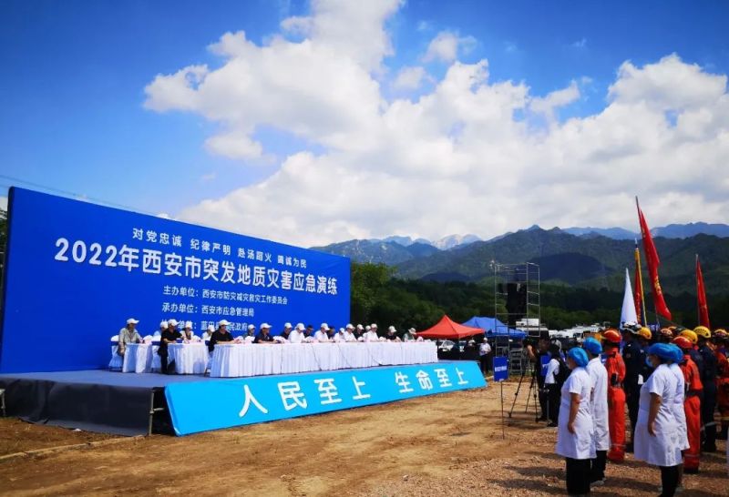 7月28日下午,西安市2022年突发地质灾害应急预案演练在蓝田县普化镇周董村举行。围绕预警监测、预警行动、启动响应、应急响应、响应措施、突发事件应对、信息发布、后期处置等主要环节,本次演练全面检验和展示了全市应急准备、救援处置等各项工作,达到预期效果。