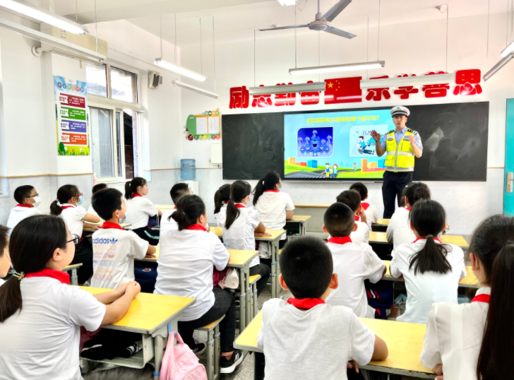 华山实验小学邀请交警新城大队执勤五中队副中队长杨杰警官,走进校园为学生进行安全教育。杨杰通过生动有趣的讲解,帮助孩子们更好地了解并牢记交通安全知识。