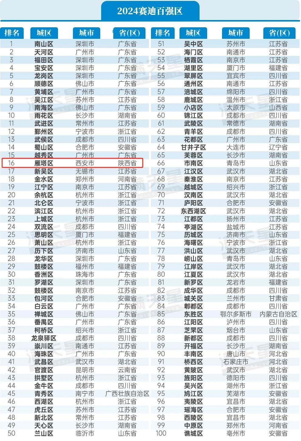雁塔区继续蝉联全国百强区TOP16,西北第一。