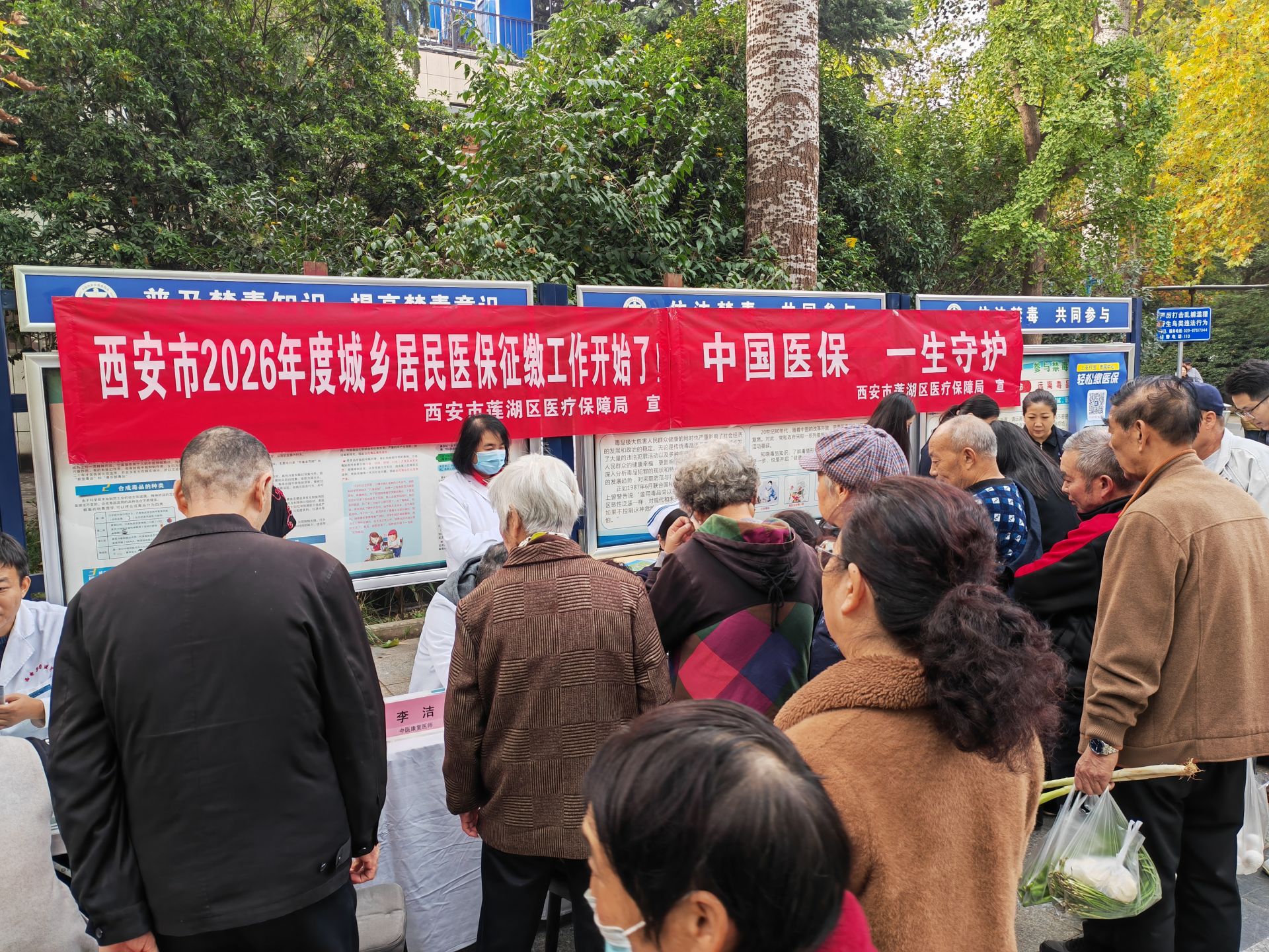 为切实提高群众对2026年度城乡居民医保政策的知晓率与参保积极性,10月31日上午,西安市莲湖区医保局联合桃园路街道办事处、蚂蚁集团支付宝公司、西安步长中医心脑病医院、西安市莲湖区桃园社区卫生服务中心、西安莲湖圣贝口腔门诊部、陕西国瑞艾欣大药房有限公司,在劳动公园开展2026年度城乡居民医保征缴线下宣传活动。